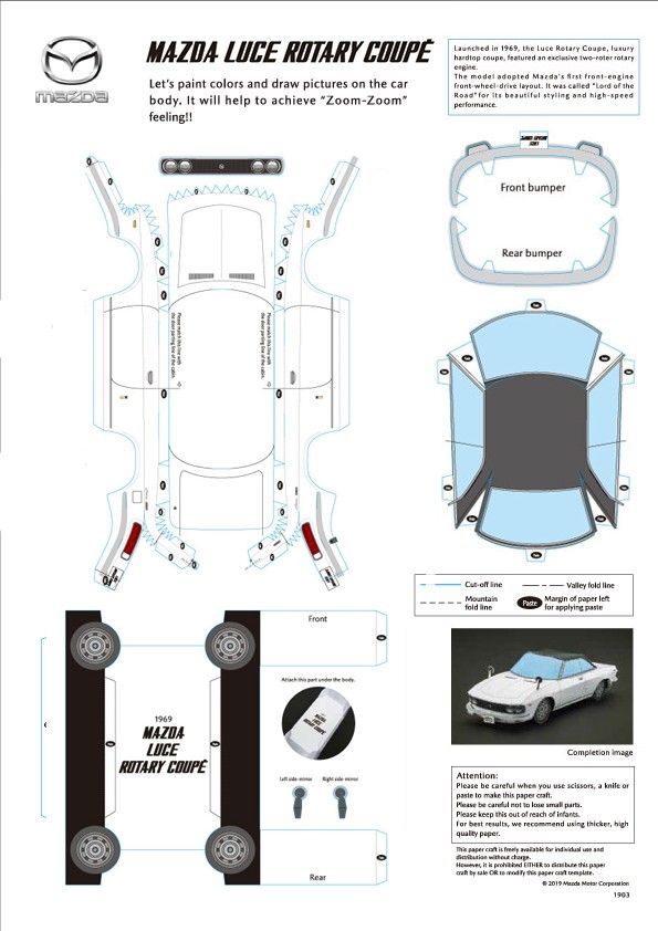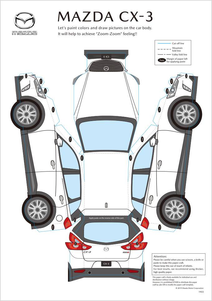 Mazda made a paper craft data to let children feel the fun of manufacturing, as an initiative of social contribution (Human Resources Development).